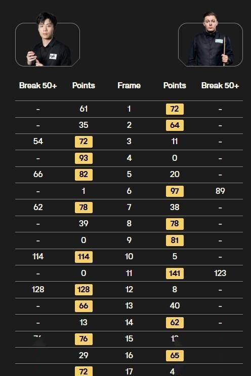 这冰火两重天的结果,是不是让你觉得,斯诺克这项运动,有时候数据真的说明不了一切? 当一位球员轰出两杆破百、四杆50+,进攻数据全面碾压,却输给了一个只打出一杆破百和两杆50+的业余选手时,我们到底该相信纸面上的华丽,还是记分牌上的冰冷现实?